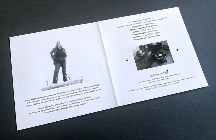 Dawn Clement is a jazz pianist out of Seattle. The artworks on the cover, were a series of multi-colored original watercolor paintings. The decision was made to make them monochromatic and change the color scheme front-to-back from blue to red. The remaining design was undersunderstated to match the vibe of the music.